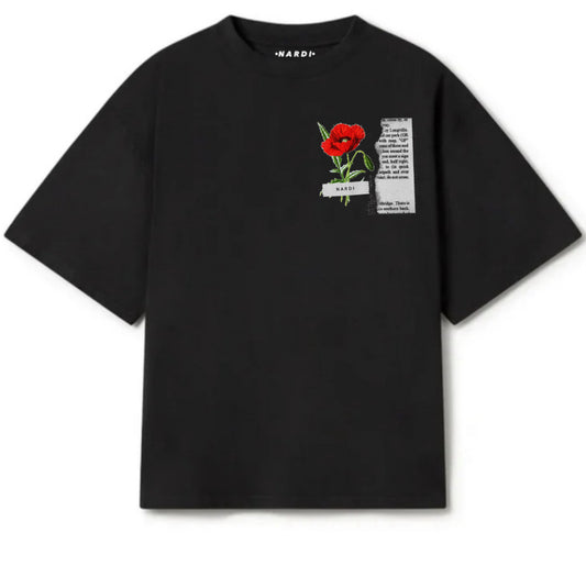 BLACK JERSEY T SHIRT WITH YELLOW LOGO